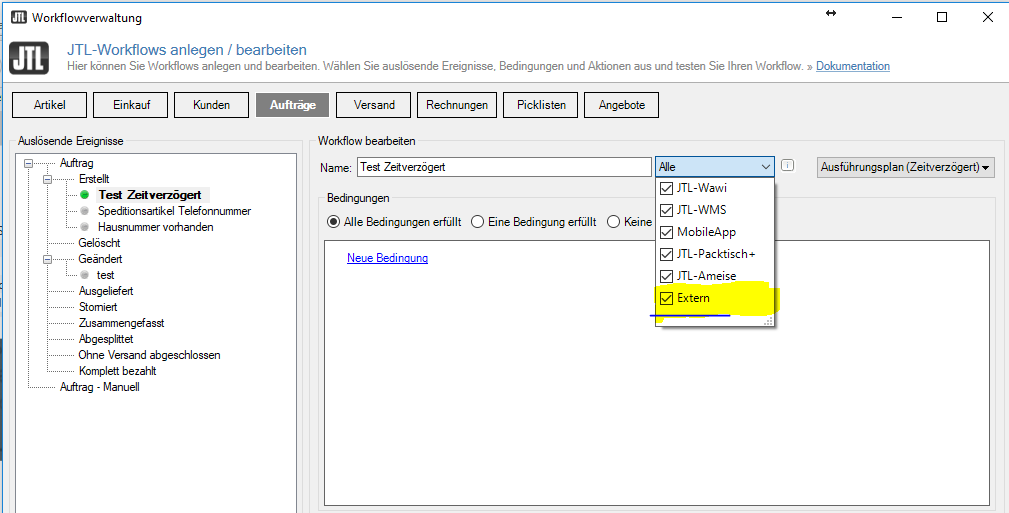 Generell empfehlen wir Dir, Workflows als zeitverzögerte Workflows in JTL-Wawi anzulegen.