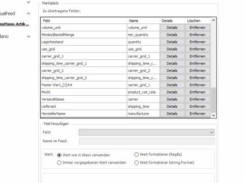 Der IndividualFeed kann per RegEx und string.Format angepasst werden. Diese Einstellungen stellen Individualisierungen deiner Daten dar. Dies ist kein Bestandteil unseres Supports. Die Nutzung des IndividualFeeds erfolgt eigenverantwortlich. Bei Rückfragen zu RegEx und string.Format kannst du dich an deinen IT-Administrator oder Dienstleister wenden.