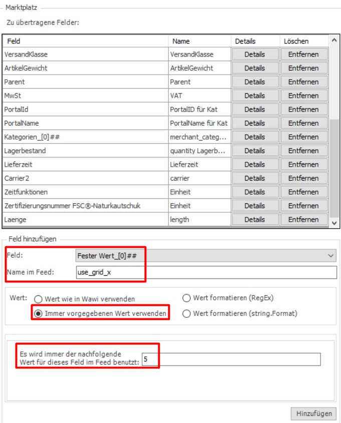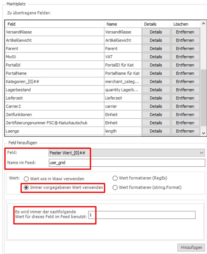 - Angabe des zu nutzenden Use_grids muss im Vorfeld im Backend von ManoMano angelegt werden und die Nummer dann dem Attribut use_grid_x = 5 (5 entspricht der Nummer aus dem Backend in unserem Beispiel)