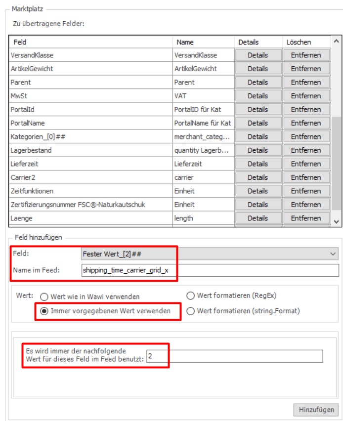 - Angabe der Versandzeit (hier 2 Tage) für das genutzte Use_grid 5: shipping_time_use_grid_x = 2
