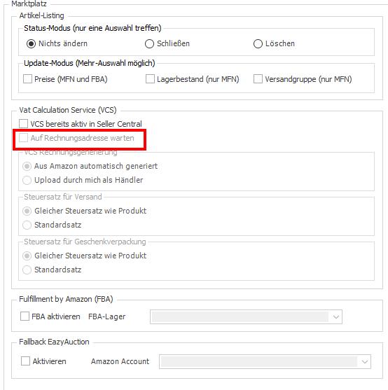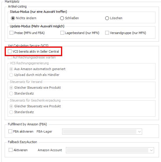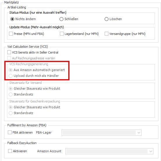 Nutzt du VCS Lite, markerie bitte "Upload durch mich als Händler" - das entspricht dem Berechnungsservice von Amazon, allerdings lädst du noch die Rechnungen und Rechnungskorrekturen aus der Wawi hoch.