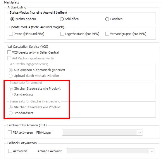 2.4 Steuersatz für Versand / Steuersatz für Geschenkverpackung