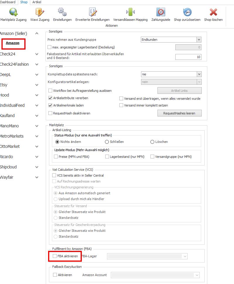 4. Setze den Haken bei "FBA aktivieren"