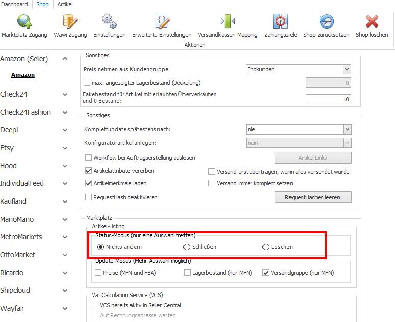 Hier kann die Entscheidung getroffen werden, ob Nullbestand/Deaktivierung der Artikel ignoriert wird, zu inaktiven/geschlossenen Angeboten führen oder ob diese aus dem Seller Central gelöscht werden sollen.