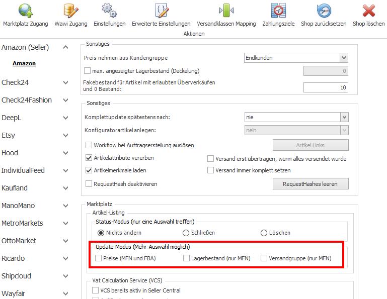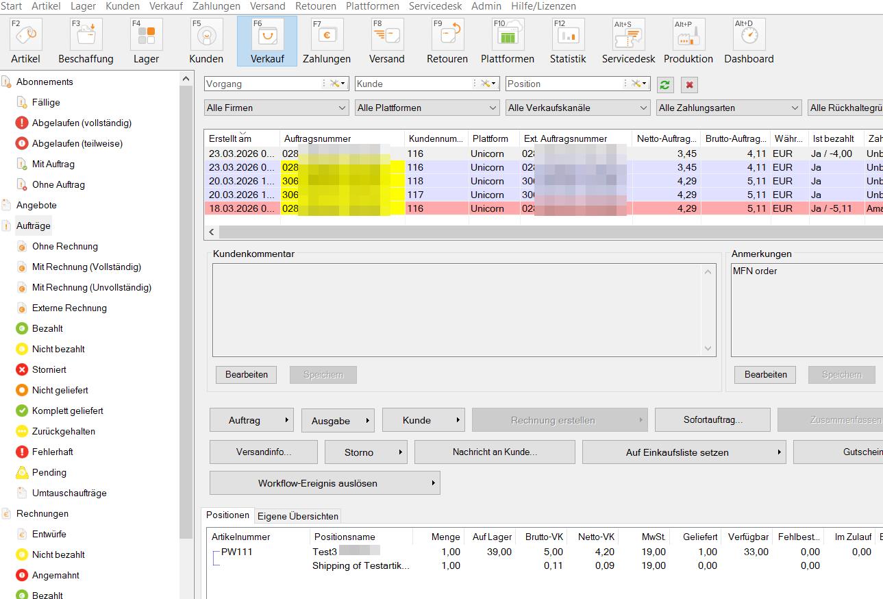 • Anlage von MFN-Aufträgen (Merchant Fulfilled Network bzw. FBM = Fulfillment by Merchant), auch Import von Stornierungen